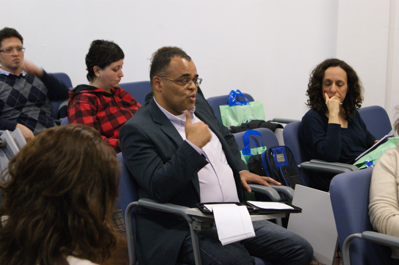 Logo em seguida, às 14 horas, teve inicio a segunda palestra, por Marco Antonio Rodrigues Barbosa e Marlon A. Weichert, sobre o tema Justiça de Reparação. Para contextualizar a questão, Marco Antonio falou sobre sua importância e citou alguns casos nacionais e intenacionais de justiça de reparação. Por sua vez, Marlon trouxe o tema para o presente, relatando alguns processos que estão sendo examinados, como o caso Vladimir Herzog, na Corte Interamericana de Direitos Humanos. O atual cenário politico também foi citado pelos palestrantes e pessoas da platéia, visto como preocupante na luta pelos direitos humanos e consequentemente nos temas de justiça de reparação e transição.