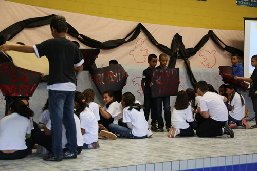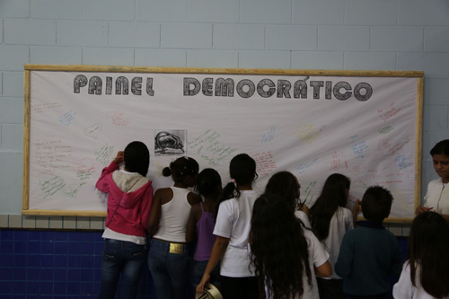 Por parte da escola, professores propuseram que os alunos criassem um grande mural com democrático, um teatro sobre o regime militar feito pelos alunos e um ações com cartazes e frases de protesto também feito pelos alunos.