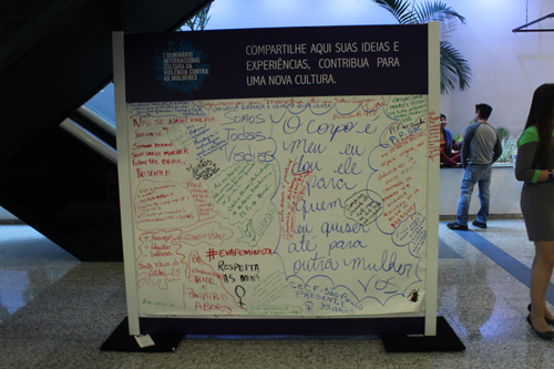 Durante dois dias, o teatro Paulo Autran do Sesc Pinheiros, em São Paulo, recebeu professores, pesquisadores, autoridades e ativistas de diversos países engajados na luta pelos direitos das mulheres. Foram realizadas mais de mil inscrições, e o evento ainda contou com transmissão em tempo real, via internet.
